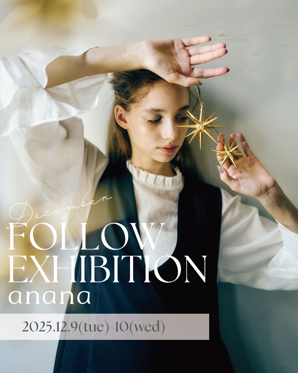 exhibition 2025.12.01 anana 25 December-follow exhibition OSAKA/2025.12.9(火)-12.10(水) 9:30-18:00 ※フォロー展は大阪のみの開催となります。 ※尚、会場の混雑を防ぐために完全アポイント制とさせて頂きます。皆さまのご協力をお願い申し上げます。 スタッフ一同、心よりお待ちしております。 何卒宜しくお願い致します。 株式会社フィオールフィオーレ